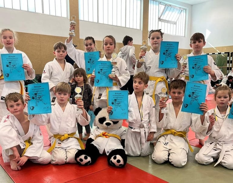 Mit 16 Pokalen, 4 Silbermedaillen und 2 Bronze konnten unsere Judoka die Heimreise vom Pokalturnier in Holthusen antreten.