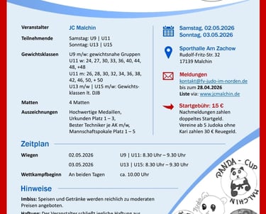 Willkommen auf der Homepage vom JC Malchin. Hier findest du die aktuellen Ausschreibungen und Termine, unsere jüngsten Erfolge im Blog, die schönsten Bilder unserer Judokas und vieles mehr.